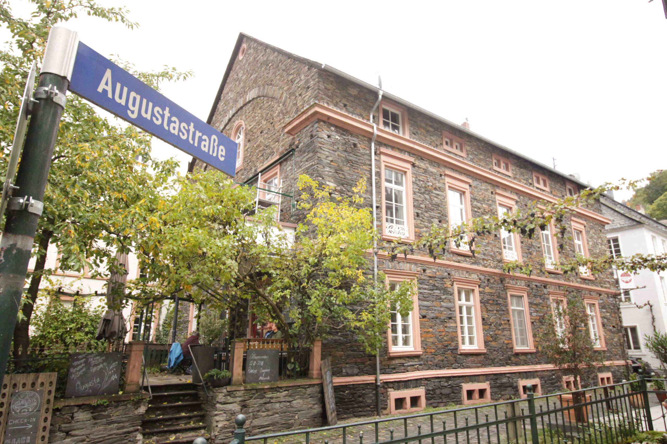 Auf Fragmenten der alten Stadtmauer und einem teilweise unversehrt gebliebenen Tonnen-Gewölbekeller aus dem Jahr 1777 errichtet der Weinhändler Heinrich Wilhelm Korn zwei Jahre später, 1859, ein prachtvolles, zweieinhalbstöckiges Natursteinhaus. Unsere Augusta.